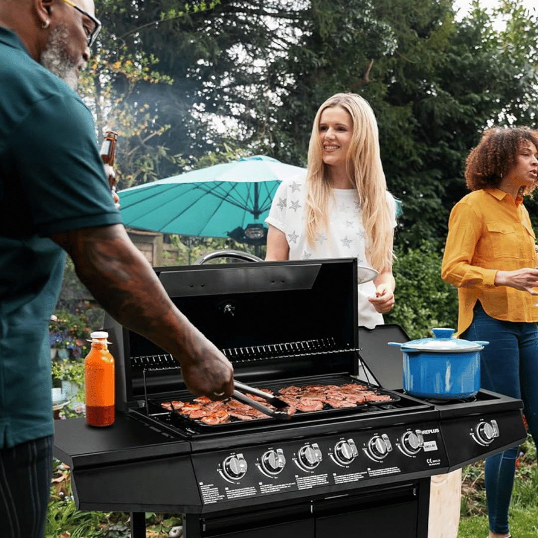 La struttura portante in acciaio inossidabile e acciaio con finitura verniciata a polvere (powder coated) assicura una resistenza eccellente agli agenti atmosferici e all’usura, caratteristica che Noleggiando.com considera essenziale per garantire ai propri clienti di Torino e Milano un’attrezzatura sempre in perfette condizioni operative noleggio dopo noleggio. Il manico in acciaio inossidabile resiste al calore e permette di aprire e chiudere il coperchio in totale sicurezza anche durante le fasi di cottura più intense, mentre la protezione fiamma smaltata distribuisce uniformemente il calore e protegge i bruciatori dagli sgocciolamenti di grasso che potrebbero comprometterne il funzionamento. Il vassoio raccogli-grasso zincato estraibile semplifica notevolmente le operazioni di pulizia post-utilizzo, consentendo di rimuovere rapidamente i residui di cottura senza dover smontare componenti o utilizzare attrezzi particolari. La griglia di riscaldamento superiore rappresenta un elemento di grande praticità per mantenere caldi i cibi già pronti mentre si completano le ultime cotture, evitando che le pietanze si raffreddino prima di essere servite agli ospiti. Le 2 ruote integrate da 15 mm rendono questo barbecue facilmente trasportabile all’interno dello spazio in cui verrà utilizzato, permettendo di posizionarlo nella location più comoda e di spostarlo agevolmente in caso di necessità, mentre il vano portaoggetti situato nella parte inferiore offre uno spazio pratico per riporre accessori, utensili e la bombola del gas, mantenendo l’area di lavoro ordinata e funzionale durante tutto l’evento.