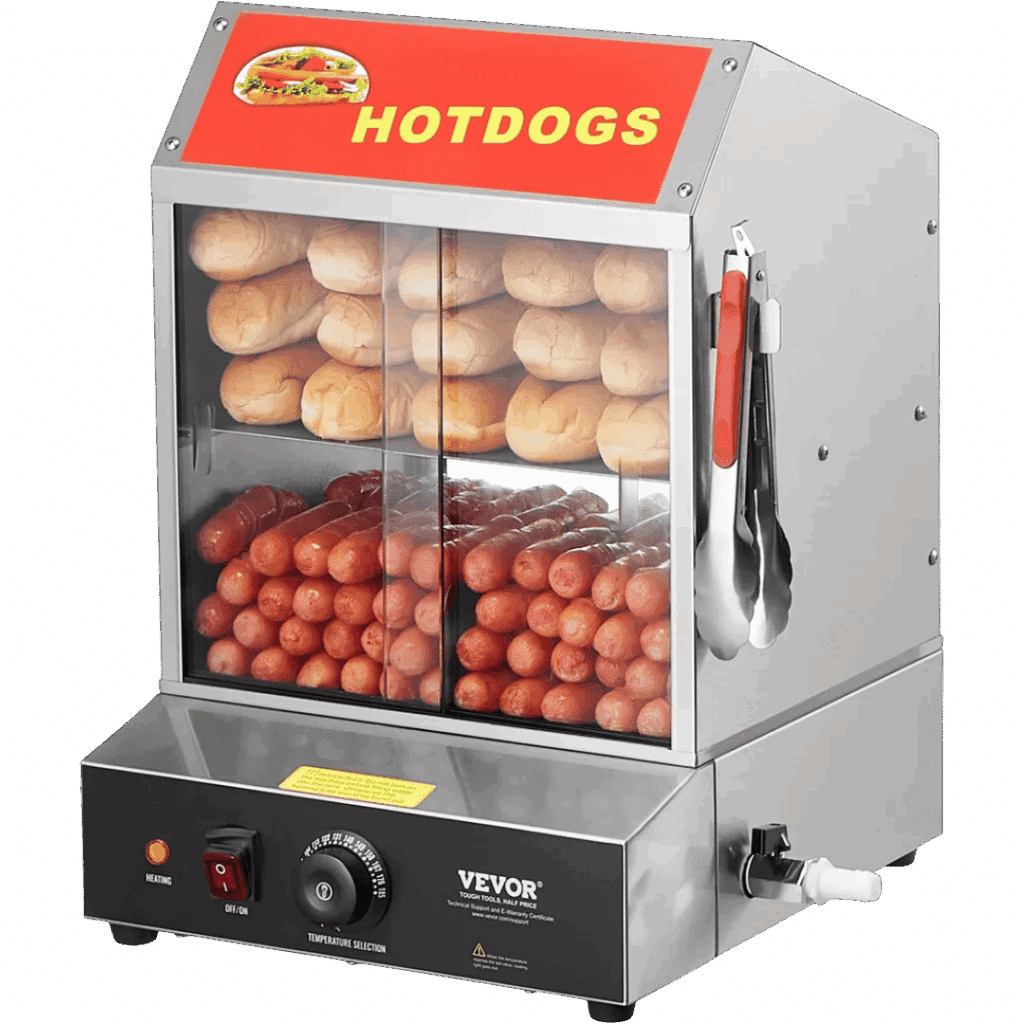 La macchina hot dog a noleggio disponibile presso Noleggiando.com a Torino e Milano rappresenta una soluzione professionale ideale per chi desidera organizzare eventi, feste private o manifestazioni commerciali senza dover affrontare l’investimento di un acquisto definitivo. Questo vaporizzatore per hot dog del marchio VEVOR, modello NB-RGG-001, offre una capacità interna di 27 litri che consente di preparare e mantenere in caldo una quantità considerevole di würstel e panini, risultando perfetto per servire numerosi ospiti in modo rapido ed efficiente. La potenza di 1200 W garantisce un riscaldamento veloce e uniforme grazie al sistema a vapore integrato, mentre l’intervallo di temperatura regolabile da 30 a 85°C permette di adattare il calore alle specifiche esigenze di conservazione degli alimenti, evitando sia la sovracottura che il raffreddamento eccessivo. La struttura è realizzata interamente in acciaio inossidabile di alta qualità, materiale che assicura non solo una straordinaria resistenza all’usura e alla corrosione, ma anche la massima igiene durante l’utilizzo alimentare, requisito fondamentale per qualsiasi attività di somministrazione. Le dimensioni compatte di 345 x 380 x 510 mm e il peso di 8,5 kg rendono questa vetrinetta facilmente trasportabile e posizionabile in qualsiasi contesto, dal bancone di un bar temporaneo al corner food di un evento aziendale.