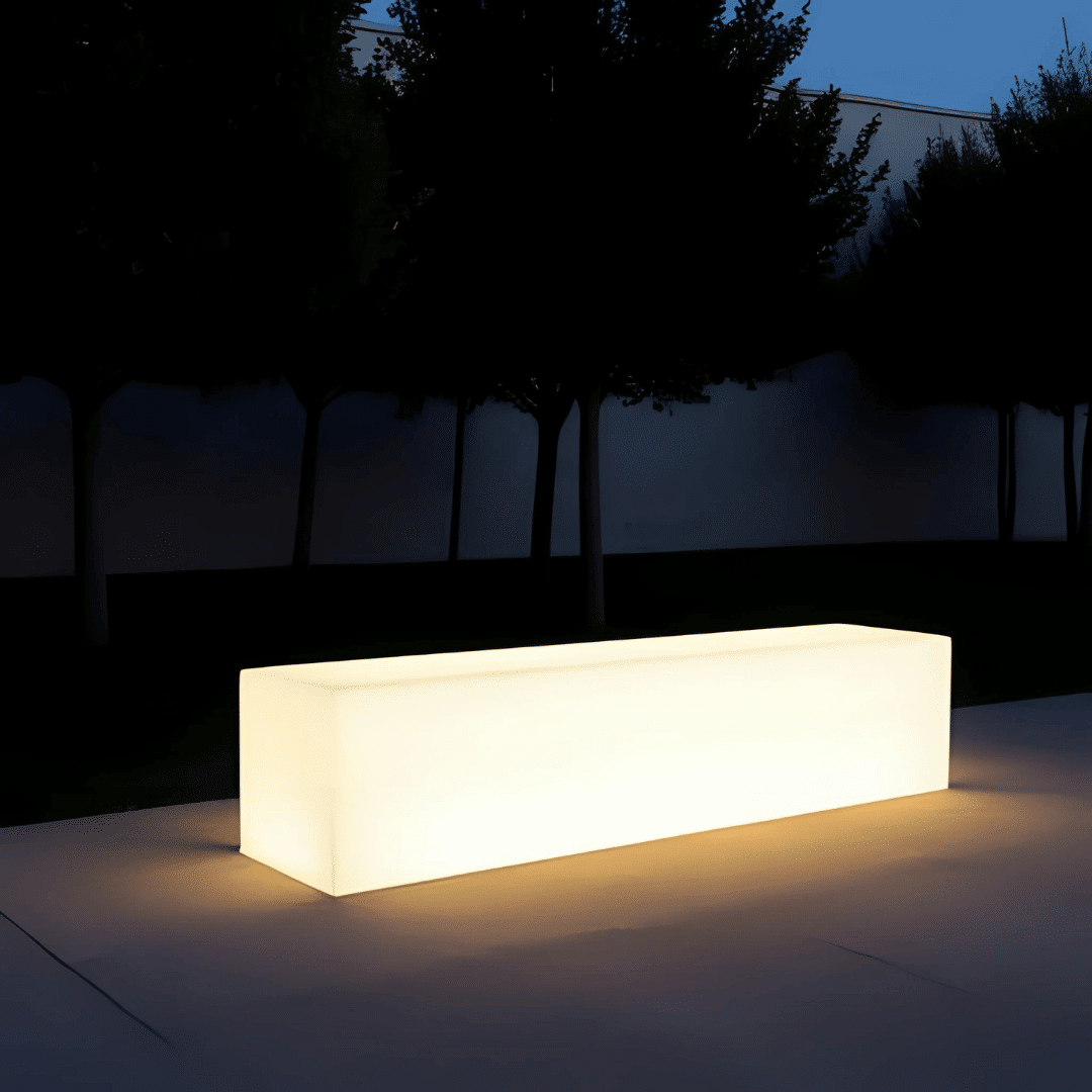 Il divanetto luminoso Snake si distingue per la sua forma affusolata e l’assenza di schienale, caratteristiche che lo rendono un elemento d’arredo estremamente versatile e adattabile a molteplici contesti. La sua struttura unica permette di creare configurazioni modulari innovative, consentendo di personalizzare gli spazi in modo creativo e funzionale. Realizzato in polietilene stampato di alta qualità, questo divanetto non solo garantisce robustezza e durabilità, ma offre anche una superficie liscia e piacevole al tatto, ideale per il comfort degli ospiti durante eventi di lunga durata. Le sue dimensioni di 123 cm in lunghezza, 43 cm in profondità e 43 cm in altezza lo rendono perfetto per ottimizzare lo spazio, sia in ambienti interni che esterni, senza compromettere l’estetica o la funzionalità.