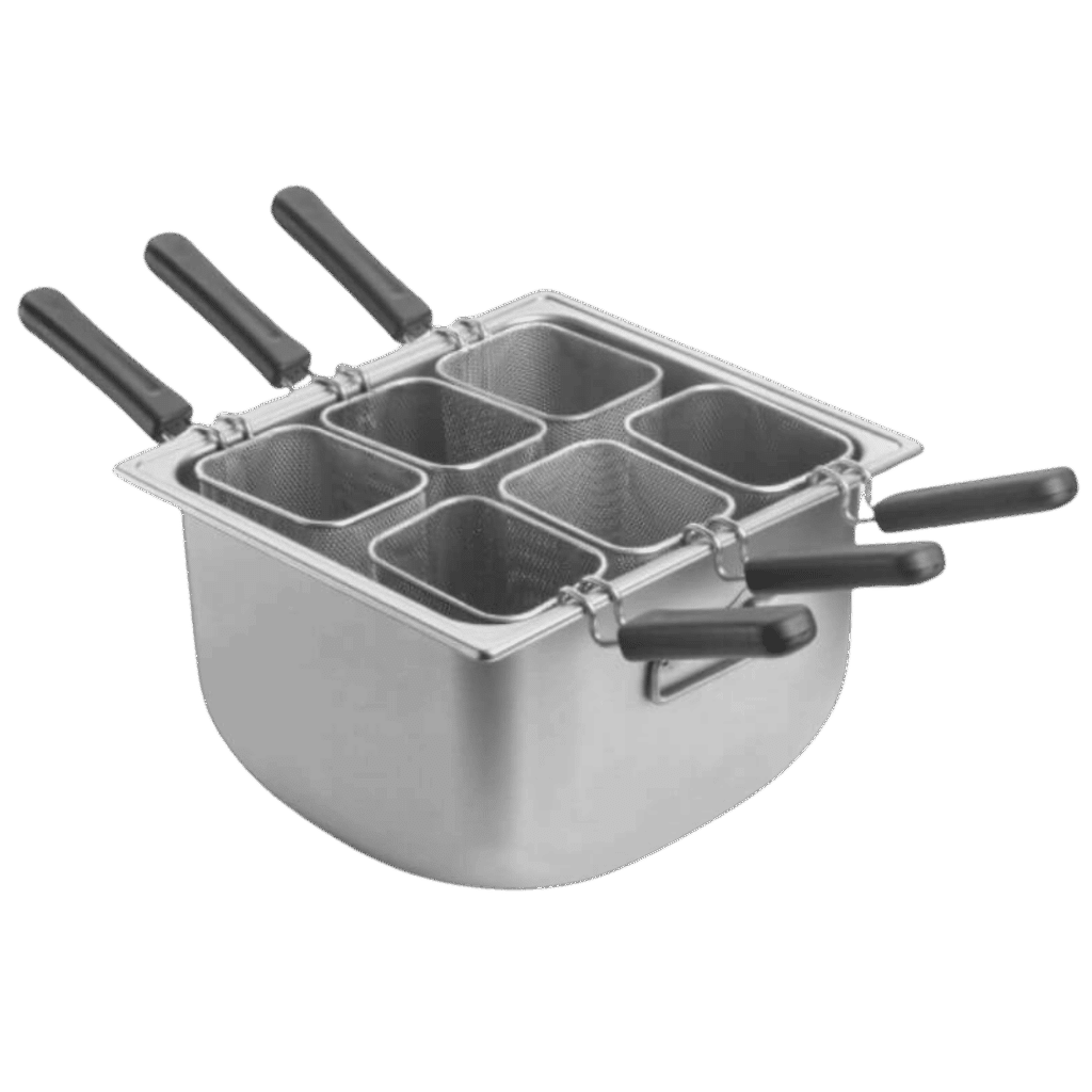 La versatilità di questo cuocipasta si manifesta nella sua compatibilità con diverse fonti di calore: sebbene sia particolarmente indicato per l’uso su piani a induzione, grazie alla sua tecnologia avanzata, può essere impiegato con successo anche su fornelli classici o elettrici, adattandosi così a qualsiasi ambiente di cucina professionale. Questa flessibilità lo rende uno strumento indispensabile per chef e ristoratori che desiderano mantenere alti standard di qualità e efficienza in diverse situazioni operative. Il noleggio di questo cuocipasta rappresenta una soluzione economicamente vantaggiosa per aziende del settore food che necessitano di attrezzature professionali per periodi limitati o per eventi specifici, evitando l’investimento nell’acquisto di apparecchiature costose. Inoltre, la possibilità di noleggiare questo strumento permette di accedere a tecnologie all’avanguardia e di adattare rapidamente la propria dotazione tecnica alle esigenze mutevoli del mercato della ristorazione e del catering.
