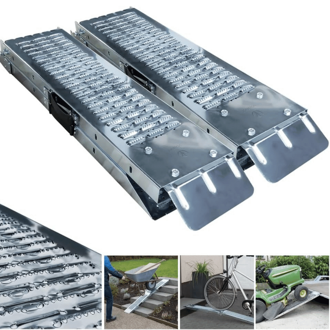 Le rampe di carico pieghevoli disponibili presso Noleggiando.com vantano una capacità massima totale di 400 kg (200 kg per singola rampa), un valore certificato attraverso rigorosi test TUV con forza applicata di 3000 N che attestano l’affidabilità del prodotto per utilizzi professionali e semiprofessionali. Questa configurazione risulta ideale per il carico e scarico di moto, scooter, quad e ATV, ma si presta perfettamente anche per tosaerba, trattorini da giardino e qualsiasi attrezzatura motorizzata che necessiti di essere trasferita su furgoni, carrelli o pianali rialzati. La piastra rinforzata sottoposta a trattamento specifico garantisce che la capacità di carico dichiarata venga mantenuta nel tempo, noleggio dopo noleggio, offrendoti sempre la massima sicurezza operativa. Le maniglie integrate facilitano il trasporto e il posizionamento, mentre il montaggio richiede appena 8-10 minuti grazie alla viteria completa fornita e alle istruzioni multilingua (italiano incluso) che accompagnano ogni noleggio effettuato nelle nostre sedi di Torino e Milano.