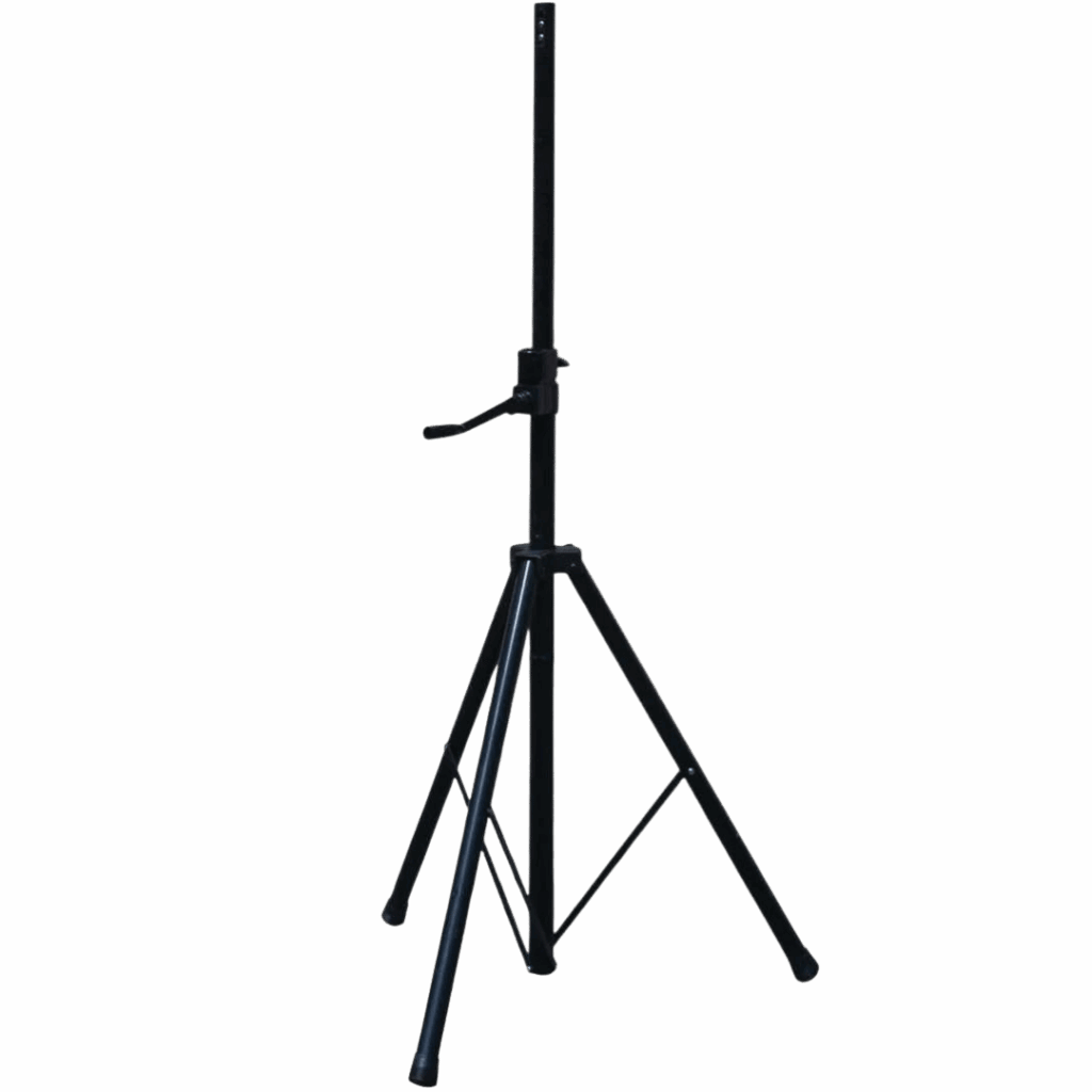 Il supporto universale per casse audio con manovella disponibile a noleggio presso Noleggiando.com rappresenta una soluzione professionale di altissimo livello per chi necessita di posizionare diffusori acustici in modo sicuro e regolabile durante eventi, concerti, feste e manifestazioni a Torino e Milano. Questo stativo, realizzato interamente in acciaio legato di prima qualità, garantisce una robustezza strutturale eccezionale grazie al tubo centrale rinforzato e alle gambe doppie che conferiscono una stabilità professionale anche nelle condizioni più impegnative. La capacità di carico massima di 50 kg permette di sostenere senza alcun problema la maggior parte dei diffusori professionali presenti sul mercato, dai monitor da palco alle casse attive di medie e grandi dimensioni utilizzate comunemente in ambito live e per sonorizzazioni di eventi aziendali. Il meccanismo a manovella ergonomica integrata costituisce l’elemento distintivo di questo supporto, poiché consente di sollevare e abbassare carichi pesanti con estrema facilità e precisione millimetrica, eliminando completamente lo sforzo fisico tipicamente associato alla regolazione manuale degli stativi tradizionali. L’altezza regolabile da 150 cm fino a 240 cm offre una flessibilità di posizionamento straordinaria, permettendo di adattare la collocazione delle casse audio a qualsiasi tipologia di ambiente e configurazione scenica, sia che si tratti di un piccolo locale sia di uno spazio aperto di grandi dimensioni.