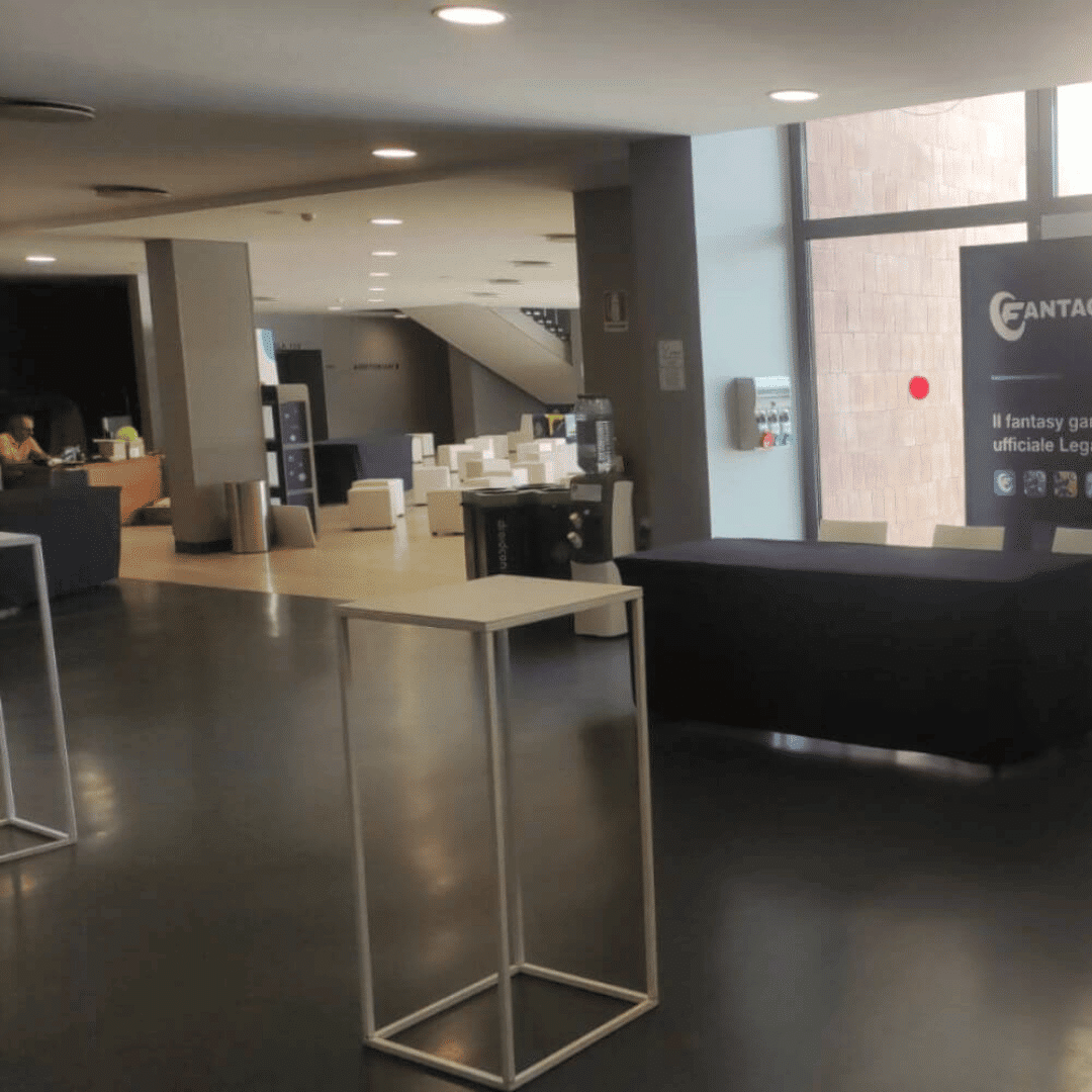 Questo tavolino alto di design si rivela una scelta eccellente per una vasta gamma di occasioni, dimostrandosi particolarmente adatto agli eventi più formali e alle cerimonie grazie alla sua estetica sofisticata e alla sua funzionalità. La sua presenza discreta ma impattante può elevare l’atmosfera di cocktail party, vernissage, cerimonie di premiazione o reception aziendali, offrendo agli ospiti un punto d’appoggio elegante e pratico. La finitura nera del metallo si adatta facilmente a qualsiasi schema cromatico o tema decorativo, rendendolo un elemento versatile per gli organizzatori di eventi che cercano di creare ambientazioni raffinate e coerenti. Inoltre, la struttura robusta ma leggera facilita il trasporto e il posizionamento, consentendo una rapida configurazione e una flessibilità nell’allestimento degli spazi, caratteristiche essenziali per professionisti del settore eventi che necessitano di soluzioni efficienti e di grande impatto visivo.