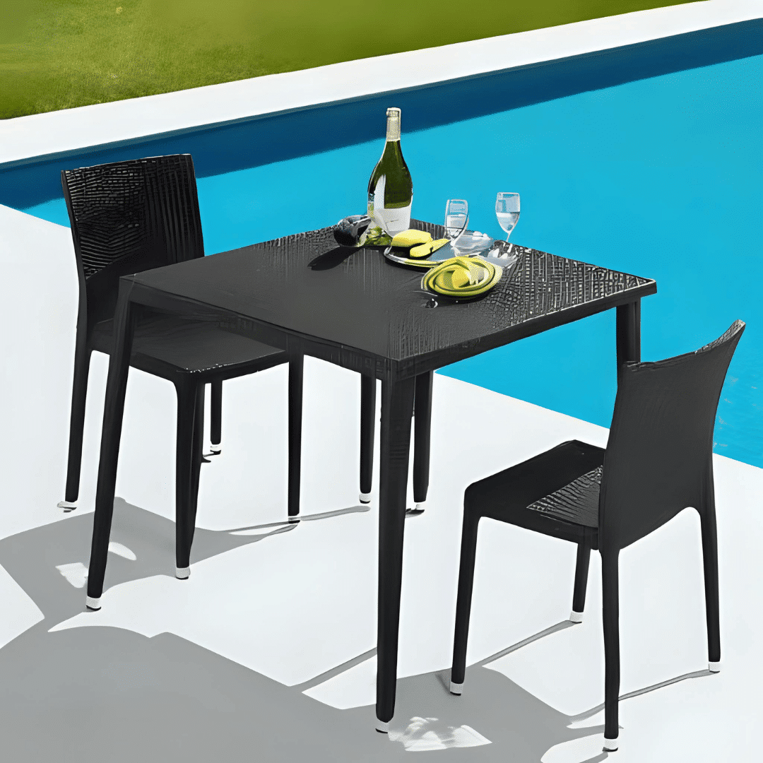 Il noleggio di tavolini neri da esterno offre una soluzione versatile e raffinata per arredare qualsiasi tipo di evento o spazio all’aperto. Questi tavolini in resina di colore nero si distinguono per la loro struttura solida e robusta in polyrattan, un materiale che garantisce resistenza alle intemperie e ai raggi solari, rendendoli perfetti per l’utilizzo in ambienti esterni. Il piano del tavolino presenta un elegante effetto intrecciato che aggiunge un tocco di stile e sofisticatezza, mentre le dimensioni di 80 cm x 80 cm x 72 cm (LxPxH) offrono ampio spazio per ospitare comodamente bevande, snack o materiali promozionali. Con un peso di soli 5 kg, questi tavolini sono facili da spostare e posizionare, consentendo una rapida configurazione e riorganizzazione degli spazi in base alle esigenze dell’evento.