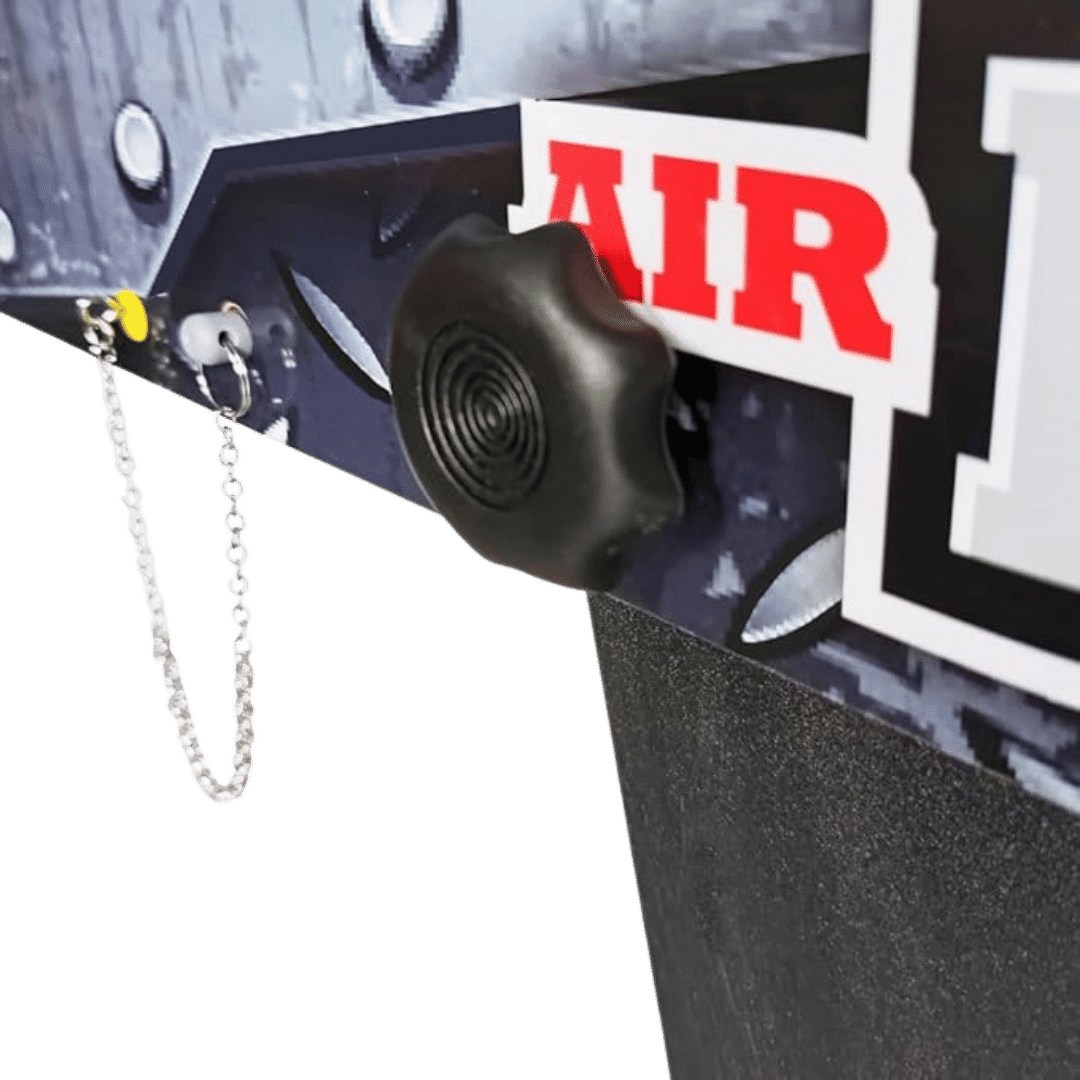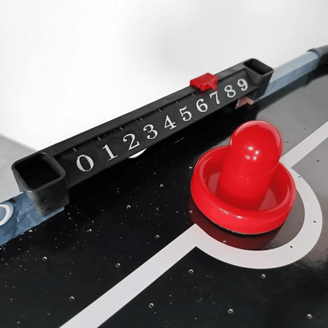 La struttura del tavolo air hockey a noleggio è realizzata con un telaio robusto in legno ingegnerizzato MDF, materiale che garantisce stabilità e resistenza agli urti accidentali che inevitabilmente si verificano durante le sessioni di gioco più animate, mentre le gambe in metallo assicurano un appoggio solido e sicuro su qualsiasi tipologia di pavimento. Il cuore tecnologico di questo tavolo è rappresentato dal sistema elettronico con ventola alimentata a 12V, funzionante a batterie, che genera un potente cuscino d’aria attraverso il piano di gioco microforato, permettendo al disco di scivolare con estrema fluidità come se si trovasse su una vera lastra di ghiaccio, replicando fedelmente l’esperienza di gioco dei tavoli air hockey professionali che si trovano nelle sale giochi. Ogni noleggio effettuato tramite Noleggiando.com include tutti gli accessori necessari per il gioco: due manopole pusher ergonomiche per il controllo ottimale durante le partite, due dischi puck di dimensioni regolamentari e il segnapunti integrato che permette di tenere traccia del punteggio senza dover ricorrere a sistemi esterni.