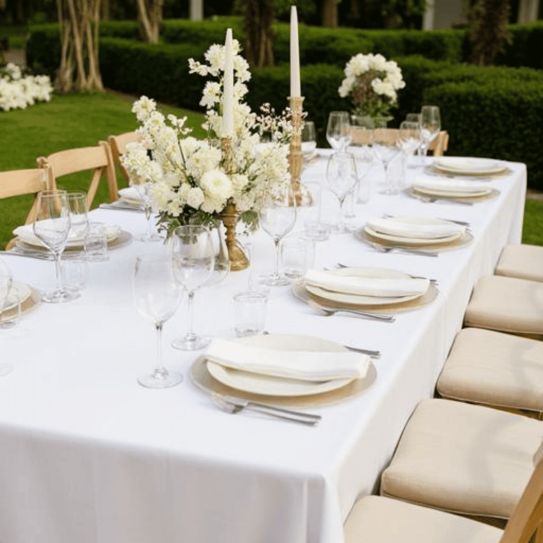 La tovaglia rettangolare bianca con dimensioni 400×240 centimetri rappresenta una soluzione ideale per tavoli imperiali, banchetti di grandi dimensioni e ricevimenti eleganti che richiedono una copertura tessile impeccabile e dalle proporzioni generose. Noleggiando.com mette a disposizione questo articolo professionale per tutti coloro che organizzano eventi a Torino e Milano, garantendo un prodotto sempre perfettamente stirato, igienizzato e pronto all’uso per qualsiasi occasione formale o informale. Le dimensioni 400×240 cm permettono di coprire con eleganza tavoli rettangolari fino a 320 centimetri di lunghezza e 160 centimetri di larghezza, assicurando una caduta laterale uniforme di circa 40 centimetri per lato che conferisce all’allestimento un aspetto raffinato e professionale. Il colore bianco della tovaglia rappresenta la scelta classica per eccellenza nel settore dell’hospitality e della ristorazione, poiché si adatta perfettamente a qualsiasi tema cromatico, valorizza la mise en place e comunica immediatamente un senso di pulizia, eleganza e cura del dettaglio che gli ospiti sapranno certamente apprezzare.